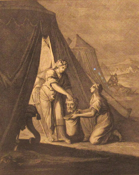In the wall vitrine above his postcard display, Demand hung a print of Rudolph Weigel’s Judith and Holofernes. The subject of numerous depictions through art history, Weigel has Judith standing in the doorway of a tent, calmly dropping the head of Holofernes into a sack after her decapitation of the Assyrian general. Implicit in the Biblical story is seduction coupled with its fatal deception.