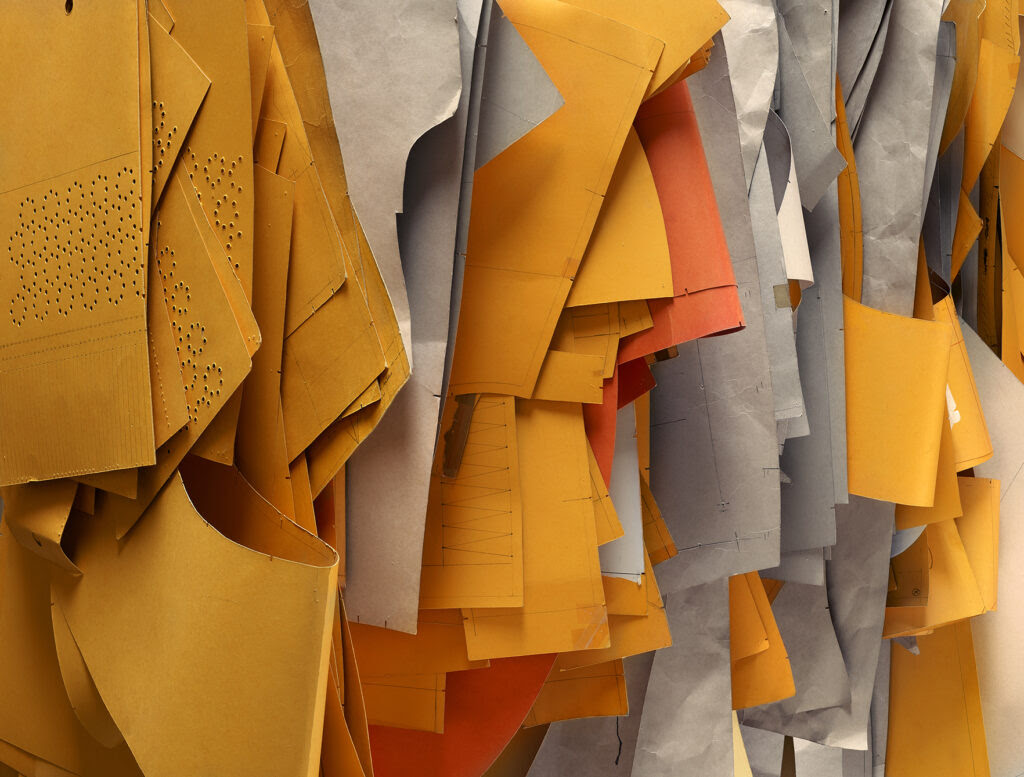 The model as a latent force that delineates our lived environment is given expression by Demand’s photographs of model details by architects SANAA (Kasuyo Seijma and Ryue Nishizawa) and John Lautner. In Demand’s photos, the pattern template files of the late fashion designer Assedine Alaïa come across as magnified strands of DNA, worn down by years of use. Alaïa’s runway creations and the flesh and blood mannequins that inhabited them may only be inferred in the photos, as are the string of celebrities that came to champion them. SANAA’s contribution to the architectural skins that clothe the art of significant galleries and museums across the globe typifies this crossing of the aesthetic from one discipline to another. Very likely, the inconspicuous site-specific ceiling installation by Martin Boyce on the second floor plays interference on the acoustics of the exhibition space. Its vane-like shapes in muffling the echoes of MOCA’s concrete architecture are a further interface of disciplines.