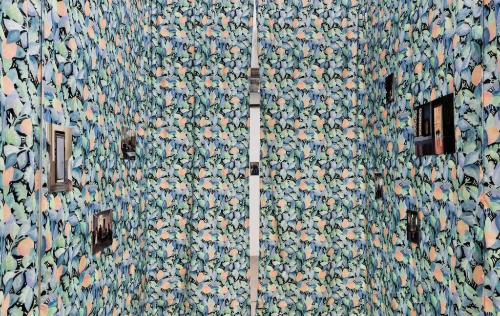 Dreaming is the theme of the works by Goodchild located in the entry passage to the main gallery, that effectively acts as an antechamber that mimics the processing of our experiences throughout today that we do before falling into sleep and dreaming fully. In this space, surrounded by patterned fabric, hangs a set of scenes painted in oil in miniature.