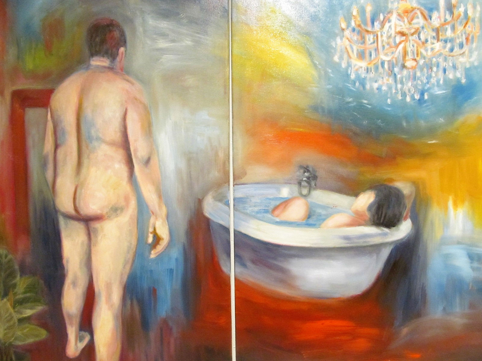 Grace Dam, The Bath, Diptych, oil on canvas, 36″ x 48″