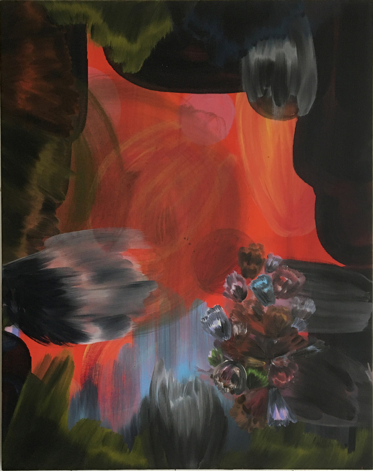Wilson has titled the show Night Botanicals but don’t expect still life flower paintings in any conventional sense. There are floral elements here, but by not restricting the work to realistic representation, Wilson opens the paintings to a much wider range of interpretations.