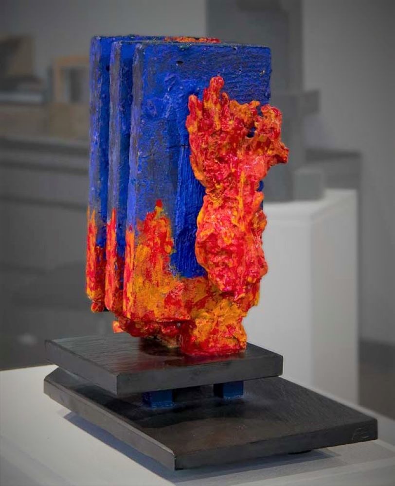 Colours have the main role in Alfred Engerer’s piece. It is a glass sculpture, a new sculpting method in Canada. Just looking at it you would never know that it is glass as it is very textural. It is extremely powerful with the contrast of vivid blue and red.