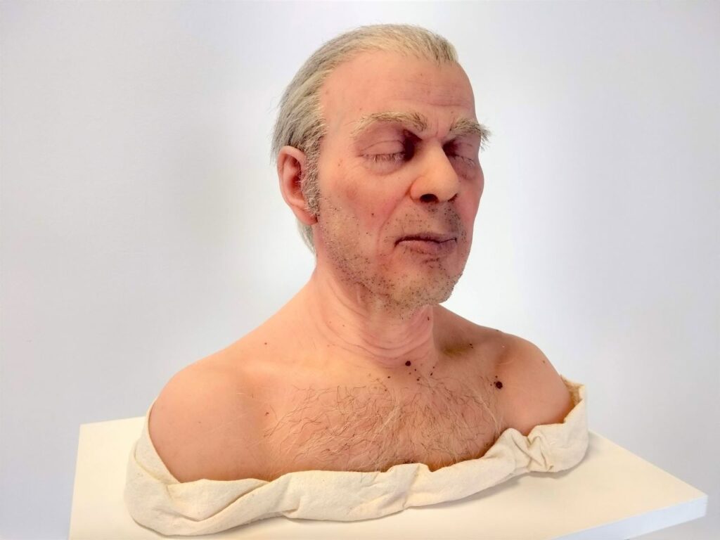 This show includes works that catch your eye with their unique appearance. Art DiLella’s bust looks like a living human being, who just closed his eyes for a second. Everything is so real in it; the illusion is so perfect. However, the sculpture came purely from the imagination of the artist. He didn’t use a model. The only real thing is the human hair, each hair having been inserted by hand.