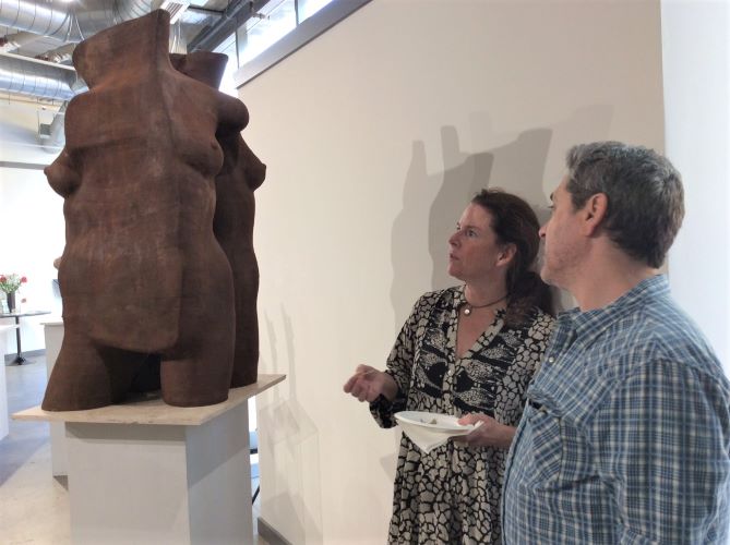 The opening reception at the new location of the gallery at 18 Gristmill Lane, in the Distillery District was well attended with artists and visitors talking about the sculptures and listening to music. The exhibitions involved all imaginable style from traditional representative to abstract. Part I was on display from June 29 to August 18, 2023.