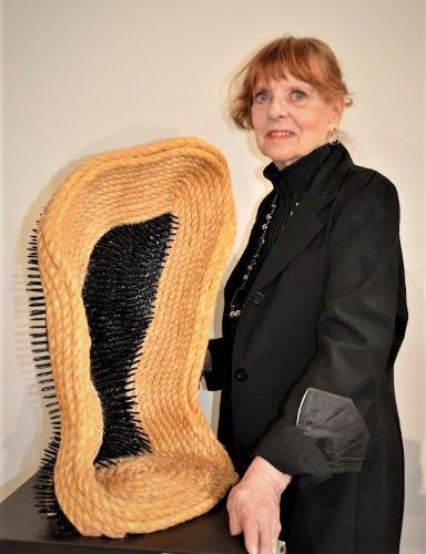 J Mac with her work, Segments, nails. rope, fiberglass