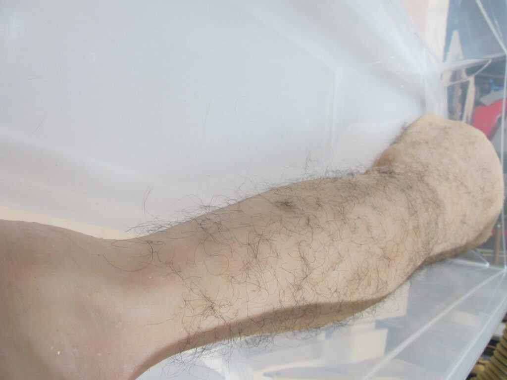 Foot cast (above) and leg cast with hair (below)