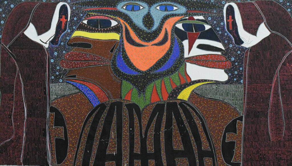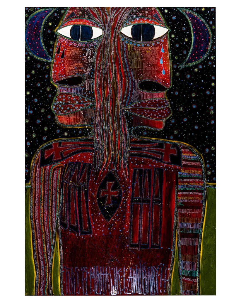 The book covers my work from 2015 to 2024. Its colours, shapes and details are as fresh and alive as my Mohawk identity. These paintings and sculptures are statements coming from a man who has been reborn. They are bold and unapologetic. There’s a freedom in the older work that I have no hope of getting back. My hands back then were held by the ancestors who were guiding me. Now I am finally and fully in control with my blood still guiding me.