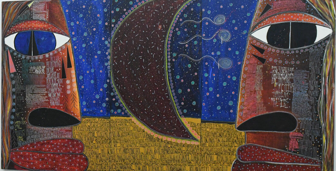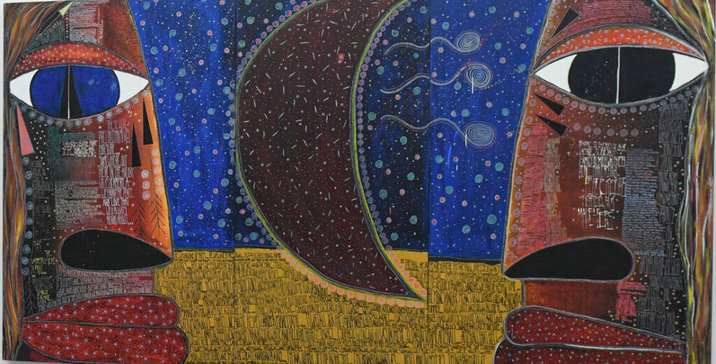 I know that the images I put on the canvas then and now is ‘blood memory’. The colours of my ancestors, the joy, the love, the trauma of people who had been forced to lose their language, their culture and their land at the hands of a colonial system that wanted them dead.