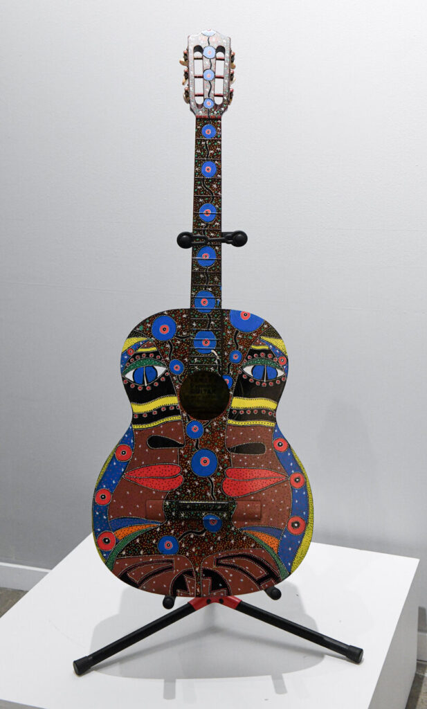 Tom Wilson Tehohahake, Painted Guitar, 2024, oil on guitar