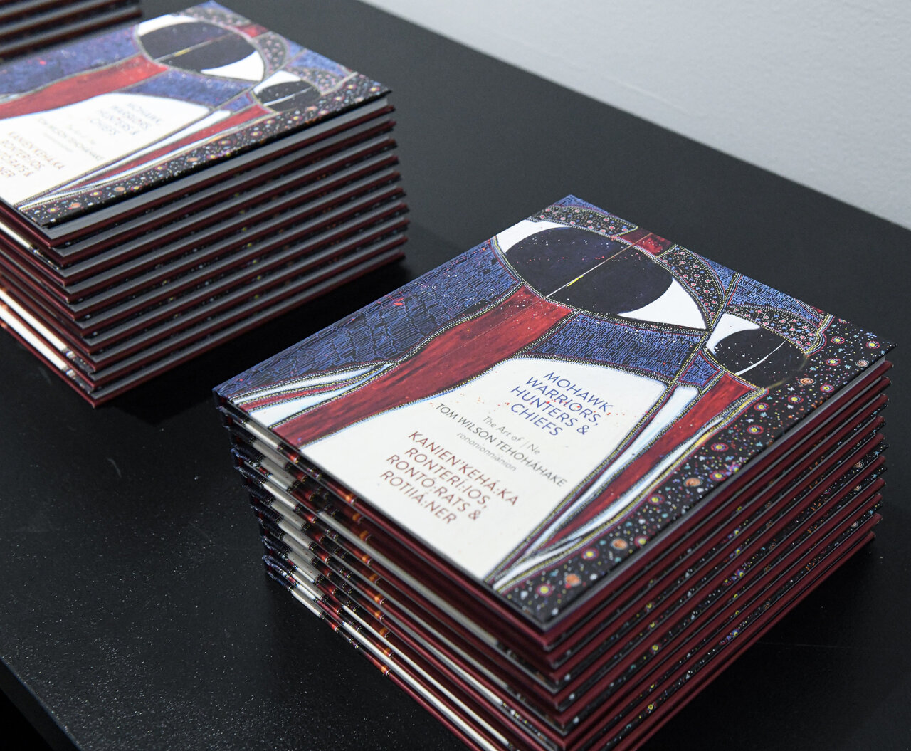 Tom Wilson Tehohahake is a musician, artist and writer with an exhibition of some wonderful paintings, sculptures and installations currently on display at the Cultural Goods Gallery, curated by David Liss. The opening reception was also the launch of Tom Wilson’s book Mohawk Warriors, Hunters & Chiefs. The book includes colour reproductions of Tom’s paintings plus essays by Tom and a statement by David Liss, the curator of the show. Tom Wilson Tehohahake is known by many as a musician in bands and winner of a Juno Award. This exhibit and book will give you more insight into this Warrior’s journey.