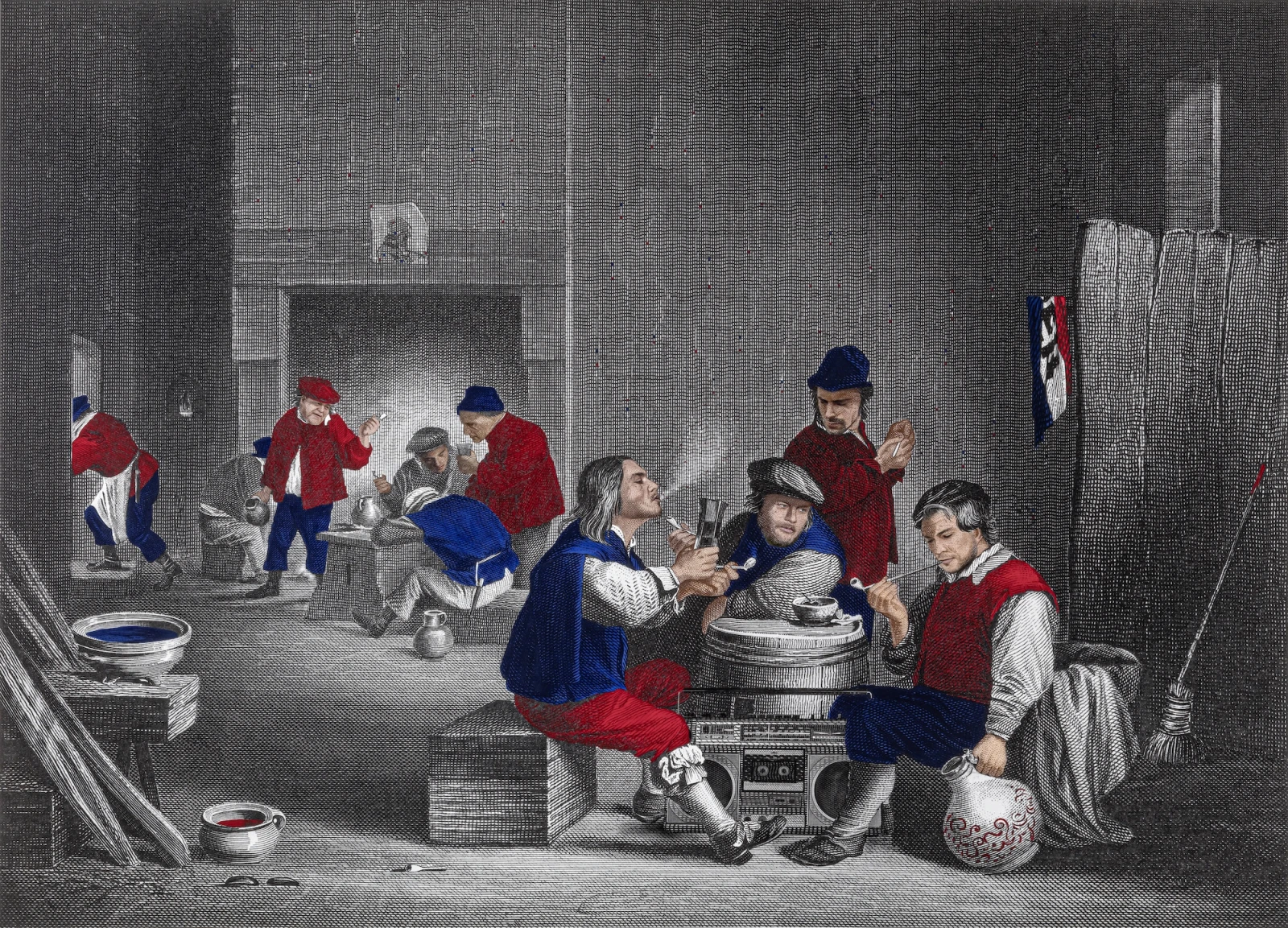 John Massey, The Smoking Room, 2019, hand-painted archival print on Canson Rag Photographique, 25 x 35 inches. Courtesy of Clint Roenisch Gallery