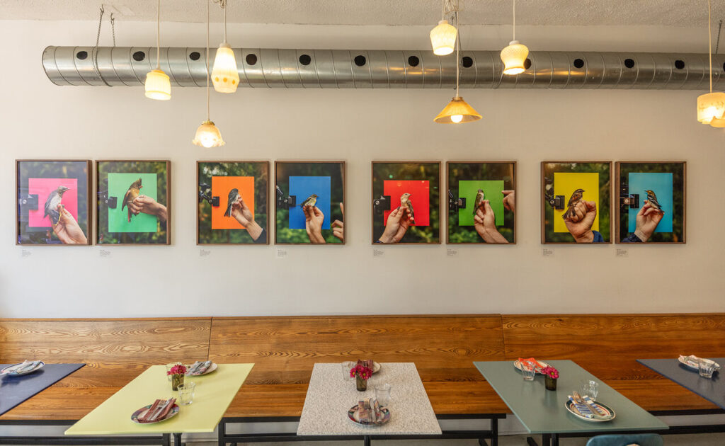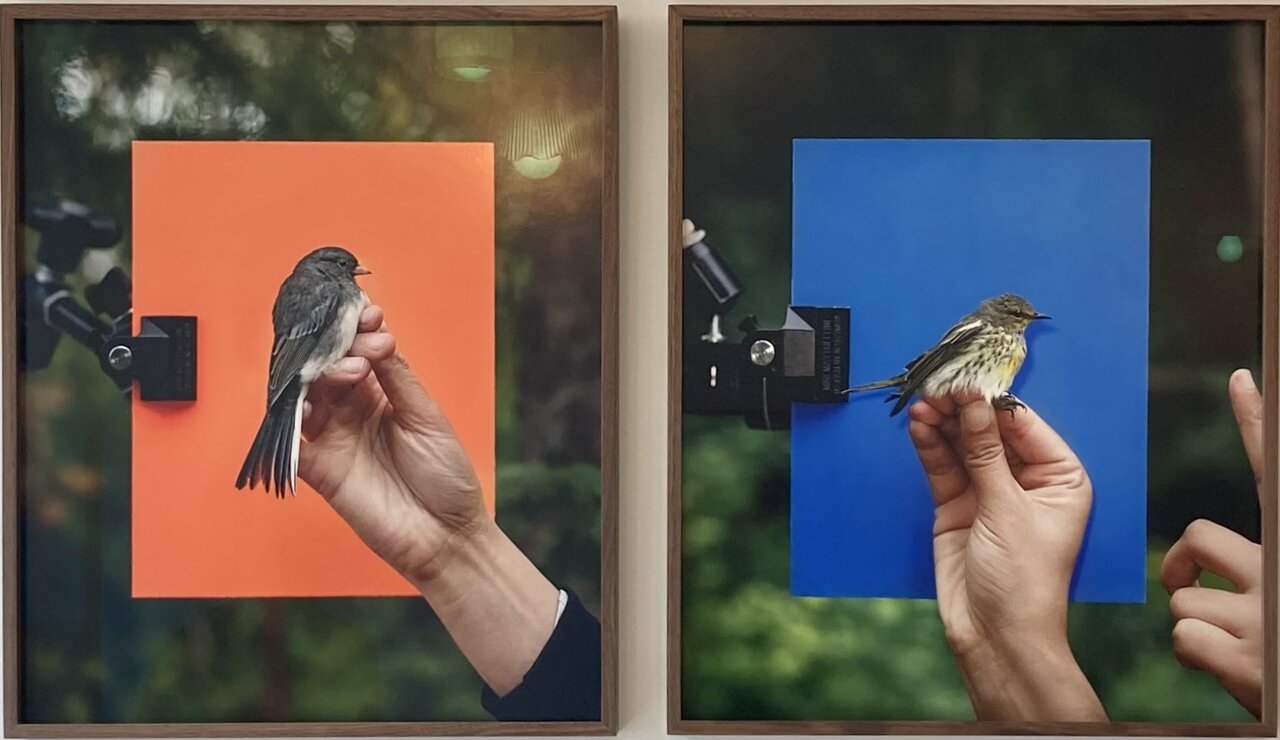 There’s something about having to book a reservation at a restaurant that builds up the anticipation. What makes the space so special that I have to let them know I want to be there? To know that it is so frequented that they may not have space for you. It encourages you to scope it out, take a look at the menu to try and figure out what makes it special. There’s also something similar to viewing art: scoping out exhibitions, seeing which catches your eye, purchasing tickets before they are sold out, and making plans to visit the venue. The planning and the research can build up the excitement, and you can only hope that your expectations are met, or better, exceeded. Thankfully, the latter was the case when visiting Finn O’Hara’s “Band on the Run”, part of the programming of CONTACT Photography Festival 2024, on view at Donna’s. The exhibition playfully explores the process of bird banding and documents the subjects in dynamic poses.