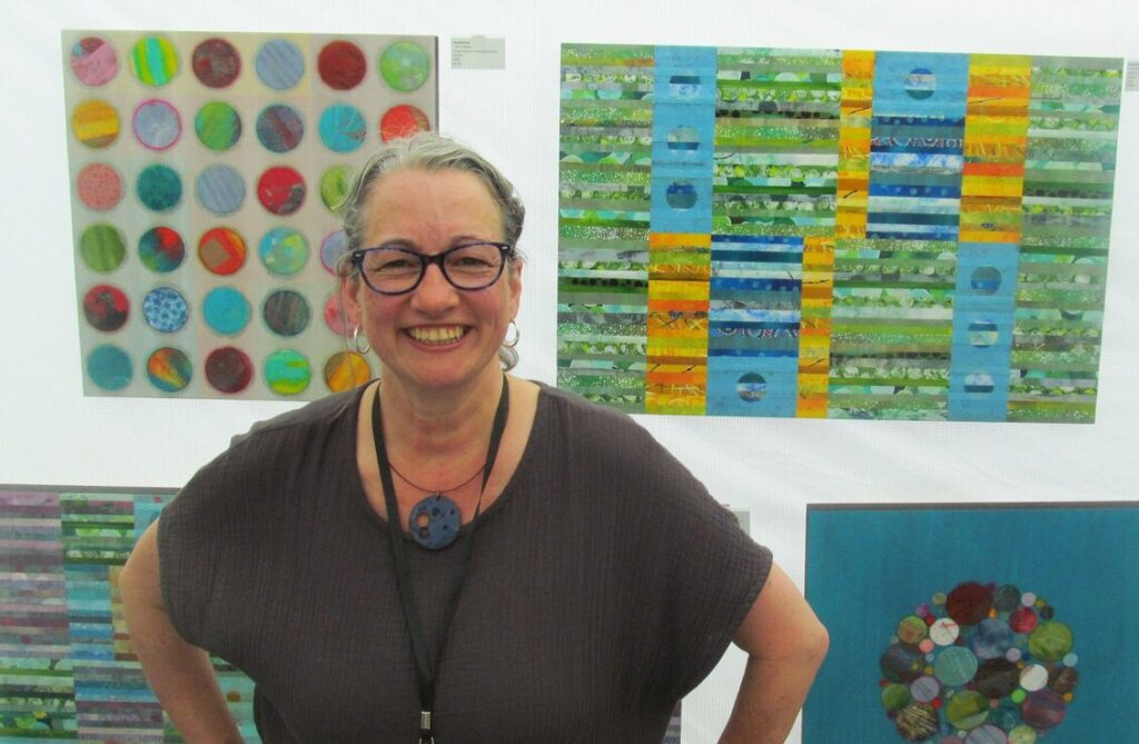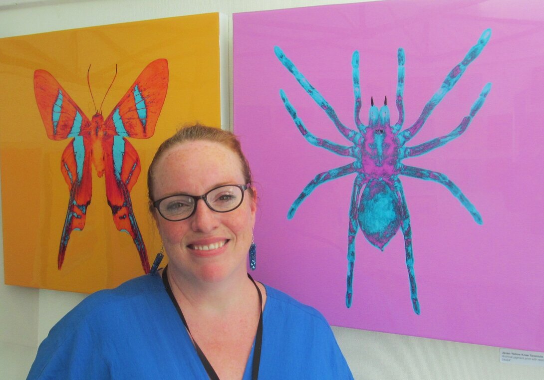 Amy Fitzgerald in front of her works