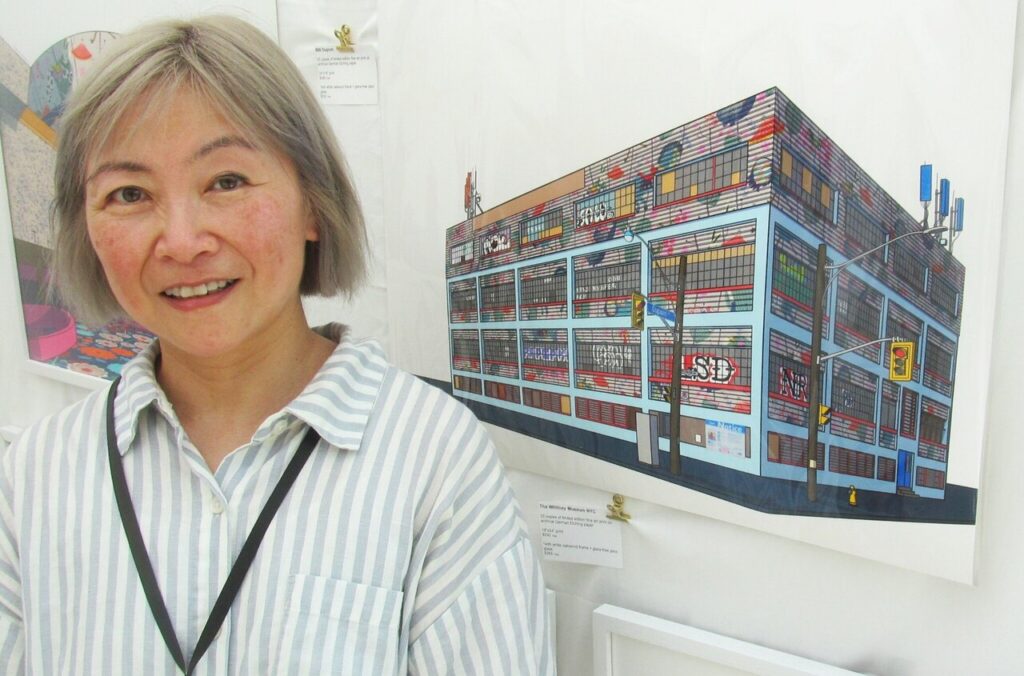 Kit Le with her work that depicts the corner of Ossington and Dupont Streets