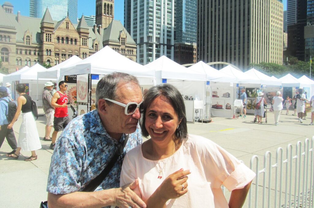 There was the usual mix of crafts and artists from all medias, plus community organizations and schools such as the Toronto School of Art. I managed to find the Executive Director Anahita Azrahimi, who was chatting with some media representatives. Art collector, curator and gallerist Flavio Belli was hamming it up with Anahita while I was getting my photo op. Flavio has been involved with TOAF for years and is always fun to talk to him.