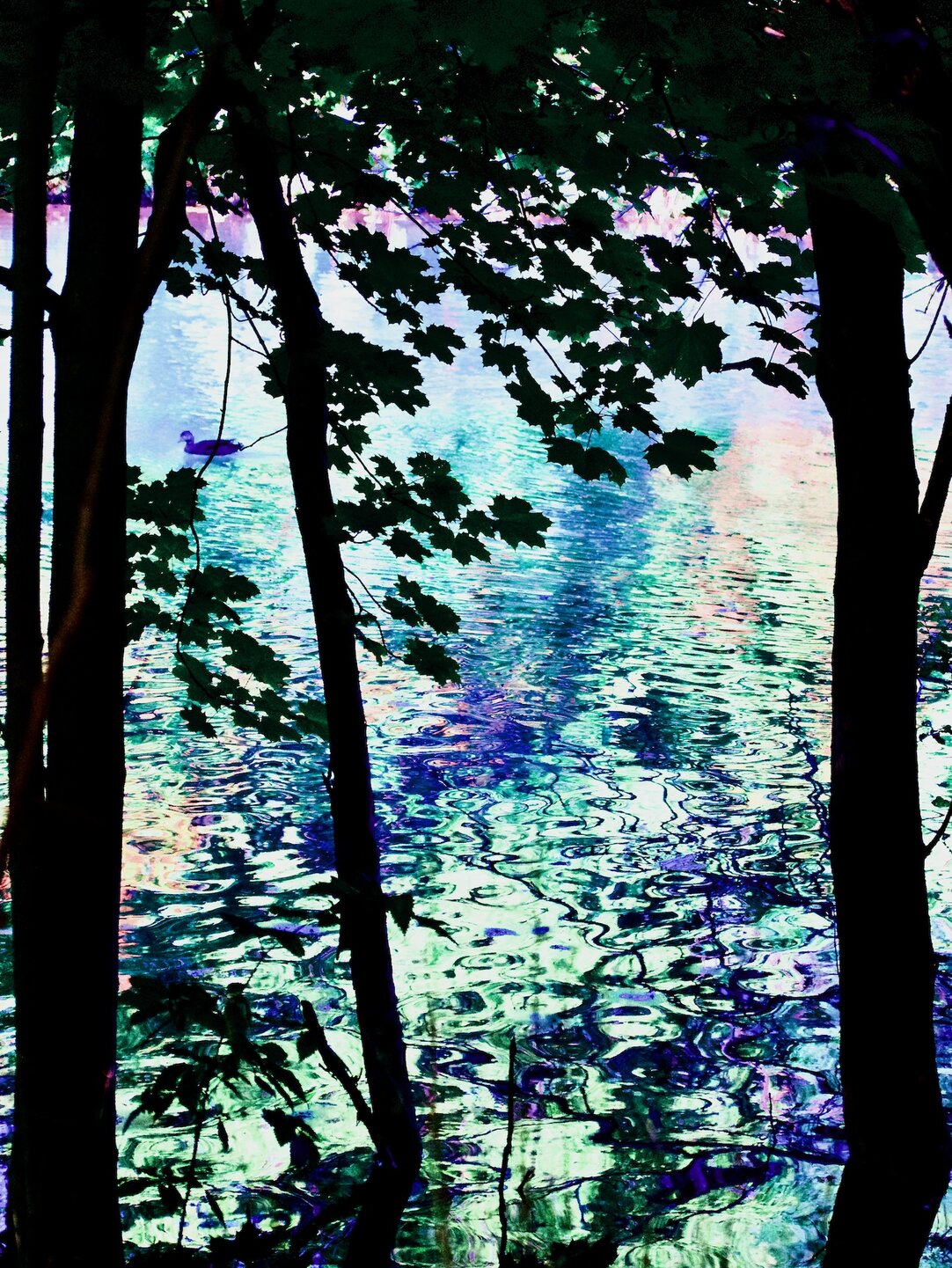 There are, of course, landscapes showing the appeal of Canadian scenery. In Joanne Shenfeld’s “Canadian Dream” we can see a chair on a cottage patio looking out over peaceful water. Margaret Kittel Canale has two photos printed on metal that depict abstract trees: “Colors in the Forest” and “Abstract Waters.”