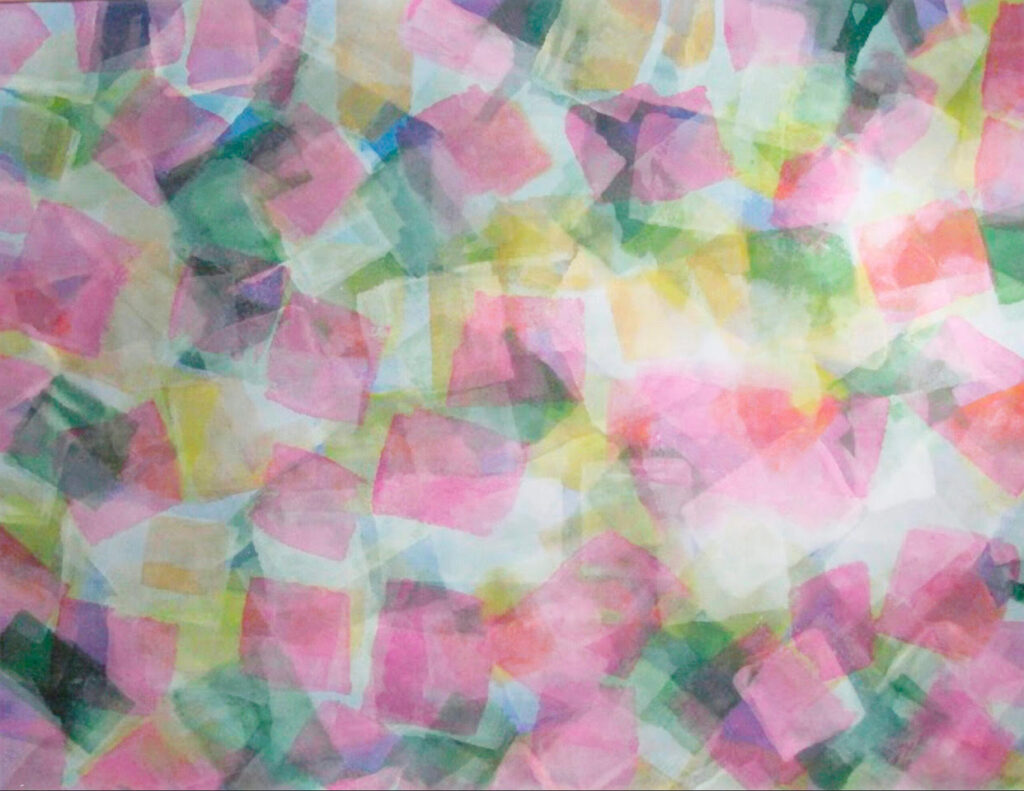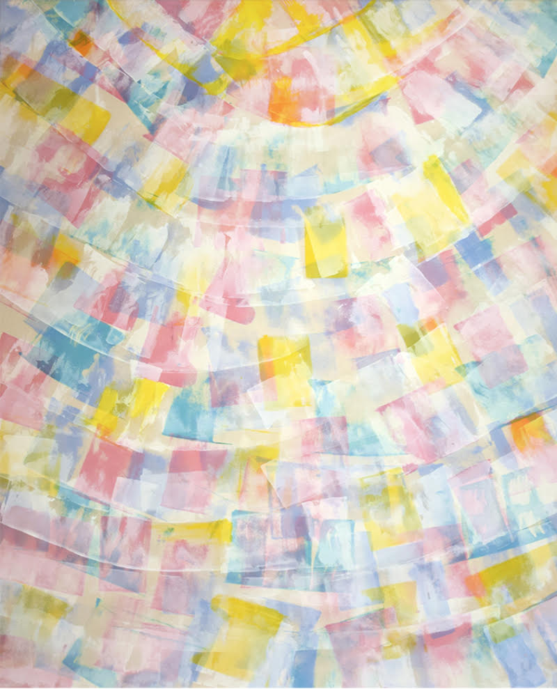 “The Song of Summer” (2000) features multiple layers of Wolfond’s signature soft, floating tiles – an airy dissolve of warm and cool. Entirely abstract, the painting tugs at the viewer for morsels of figuration in a way that the reading of Rorschach inkblots raids a subject’s psyche for personally emotive plot lines. In that respect “The Song of Summer” is not only a tool for self-reflection, but a possible psychological balm. It’s here that we arrive at the fundamental positivity of Wolfond’s art. While her red “Passion” painting may have suggested a blazing end of a day, “The Song of Summer” left the door open for a dawn to the next.