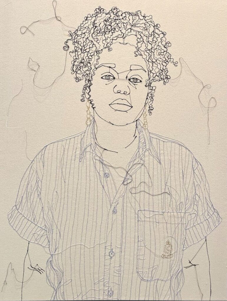Gio Swaby, Self Portrait, thread and fabric sewn on canvas