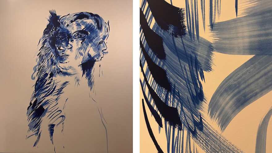 Paul Maheke, In spite of my own desire to see you disappear, 2024. A wall drawing (left) and its detail (right). Installation view: Mercer Union. Courtesy the artist. Photo: Nane Zadoorian
