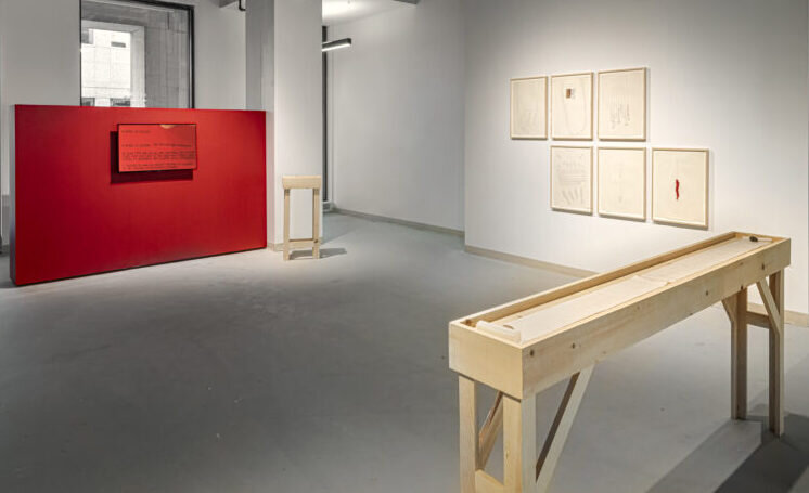 In the opposite corner of the gallery are several works by artist Cecilia Vicuña, who speaks on the topics of oppression and mind-control experiments that have created devastating chapters in our history books. The piece is an homage to Gail Kastner, an eighteen-year-old Canadian girl who endured 64 electroshocks and the forced ingestion of drugs to erase her memory. Kastner left her testimony on written cigarette boxes, that were recreated as part of the installation. Although addressing subjects of grave importance, Vicuña’s approach uses nostalgia, value of words, and abstractness of visual representations to serve as reminders of past cruelty that should not be repeated.