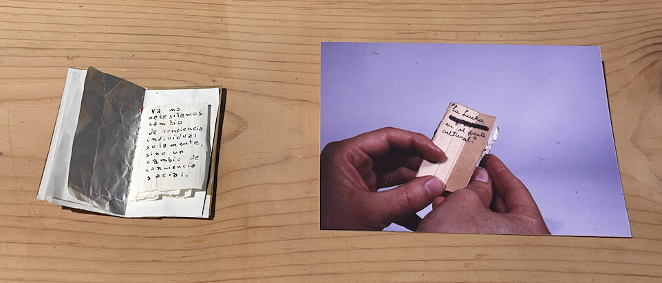 Cecilia Vicuña, A Change of Consciousness, 2024. Little handmade book, made from a found cigarette box (exhibition copy, the original is at Tate Modern), 4.5 x 7.5 cm. Courtesy of the artist and Lehmann Maupin, New York, Seoul, and London. Photo: Sherry Qin