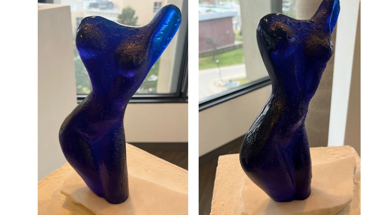 Elizabeth Merei, Blue Torso, glass and alabaster base