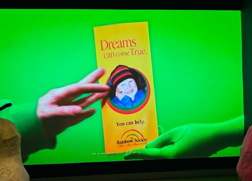 Similarly, Doucet fractures the reality behind these seemingly charitable and magical appearances, revealing corporate greed and the loopholes within wish-making charities that steer ill children towards choosing wishes for trips to amusement parks that further fund these multi-billion-dollar businesses. This point is highlighted at the end of her film, when she exposes Disney’s intentions by referring to an advertisement for the “Disney Wish” cruise and the company’s donations to the “Make-A-Wish” Foundation, which seems to ensure a return on their investment.