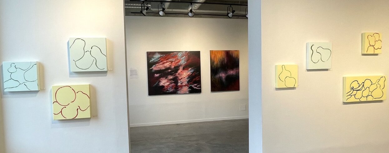 Installation view of Distant Fruit by Gwen Tooth and A Dream Within A Dream by Parissa Daie at Propeller Art Gallery