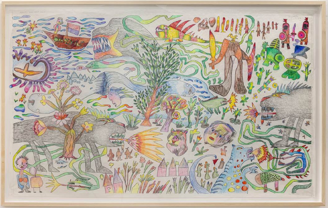 Anna Torma, Colouring Book Details II, 2025, mixed media on paper, 50 x 40 inches, framed