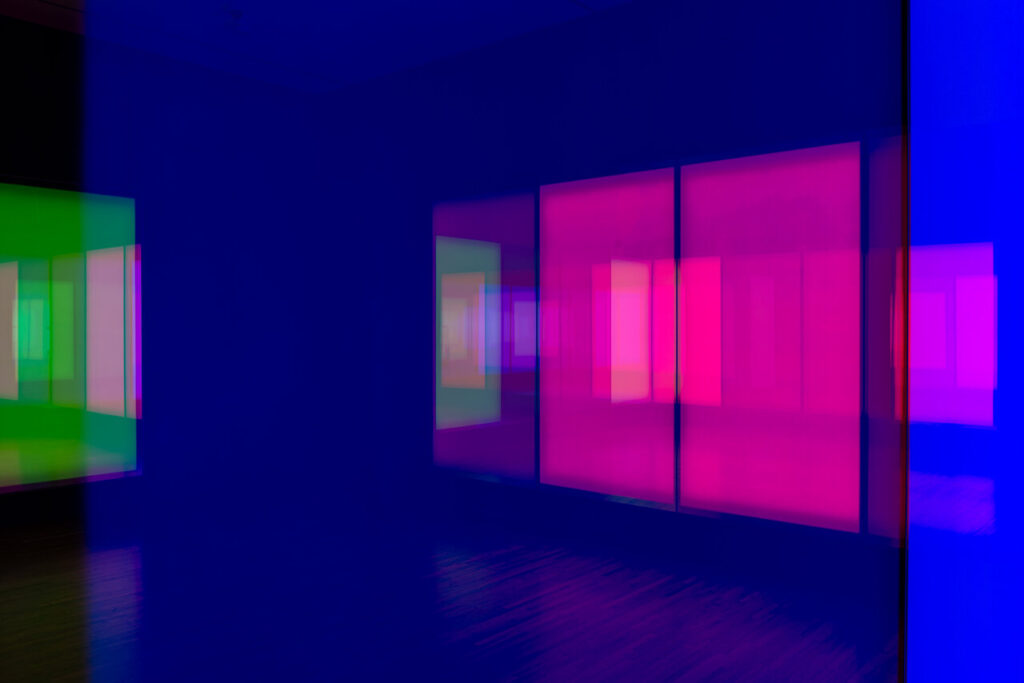Light is central to the museum and visitors experience it right away upon entering the building. In the hallway, To Breathe, Korean artist Kimsooja’s site-specific installation takes us to a different dimension, a dimension of magical light. The windows are covered with diffraction grating film and as daylight passes through it reveals rainbows throughout the space. The magic of this work is in making the invisible visible. Coloured light always amazes and fills us with joy. This kind of play with light can be found on many levels of the museum, shining through windows and creating its own ‘artworks’ on walls and floors.