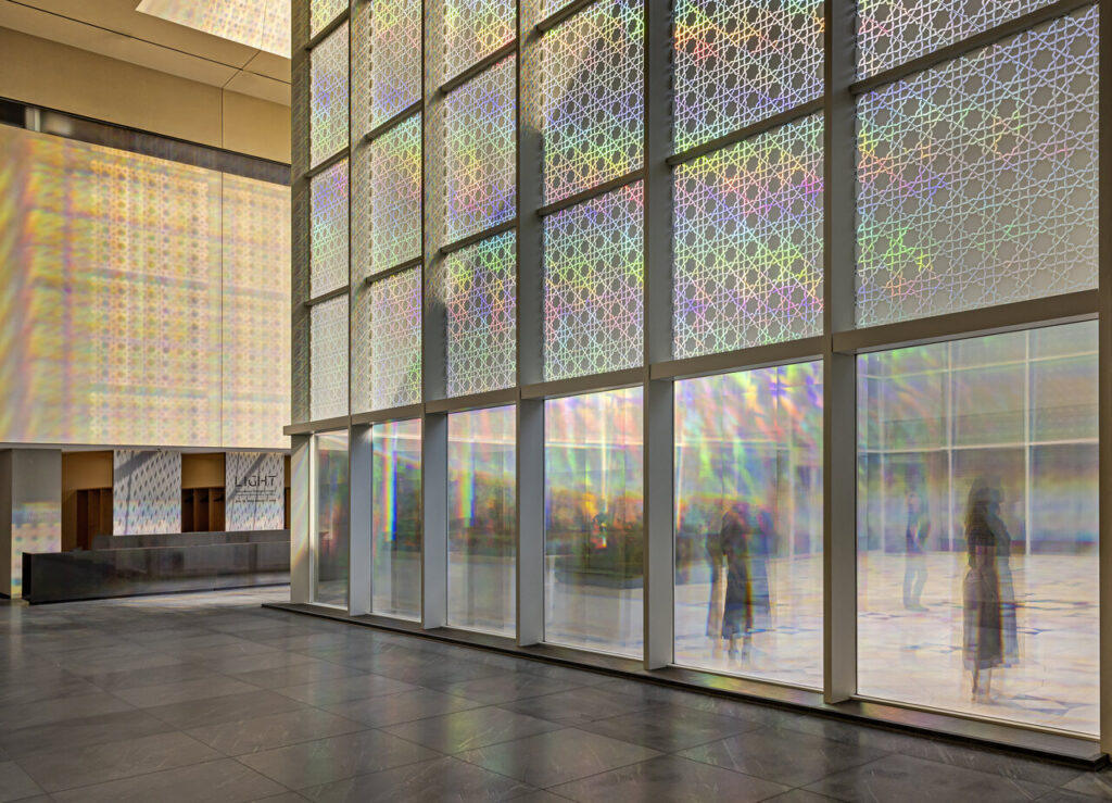 Kimsooja, To Breathe, 2024. Site-specific installation consisting of diffraction grating film. Commissioned by the Aga Khan Museum. Photography credit: Toni Hafkenscheid.