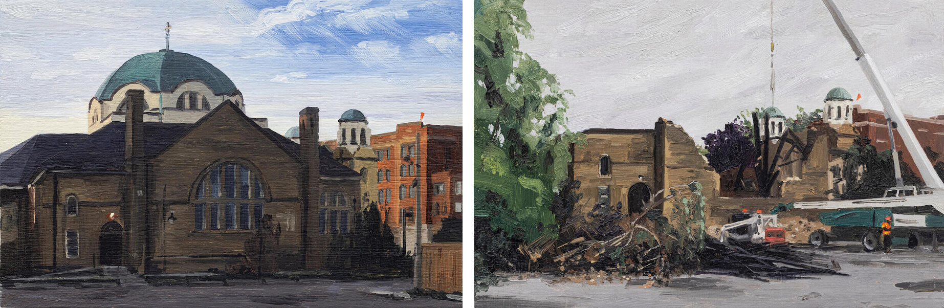 Heather Goodchild, St. Anne’s May 5th, 2020, each panel: oil on board 4 x 6 inches