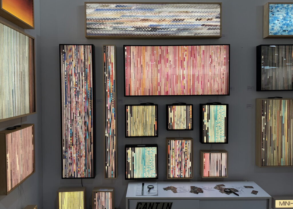Cantin’s works are meticulous collages using 16mm film, housed in LED light boxes
