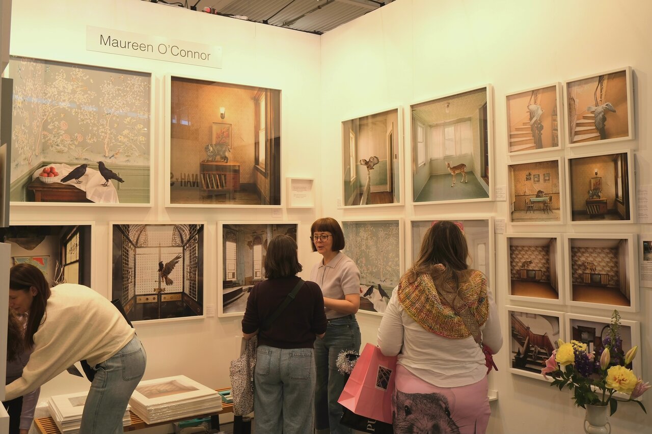 At Booth 109, Maureen O’Connor’s photographs offer a striking meditation on the convergence of the natural world and the built environment. By placing live Canadian animals, photographed in collaboration with local sanctuaries, within abandoned, crumbling domestic interiors, she creates uncanny tableaux that blur the boundary between wilderness and home. These spaces, long emptied of human presence, become transformative sites where memory lingers and new meaning begins to stir.