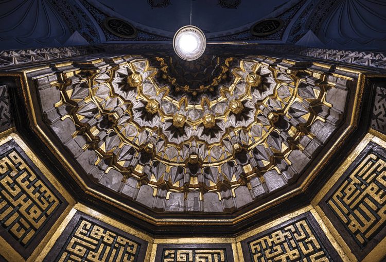What is striking about this exhibit that is no muqarnas are alike: each have their own characteristics and quality, yet they elicit awe and instill reflection in equal measures. An example would be the singular Amber Fort in Jaipur, India, created in the 17th century. The Shish Mahal, or the Hall of Mirrors, is embellished with a mosaic of convex mirrors and coloured foil, the intention for which was to coruscate in the candlelight at night. Or the Çoban Mustafa Paşa Complex, which features a strong Mamluk influence in the muqarnas carvings of black and gold.